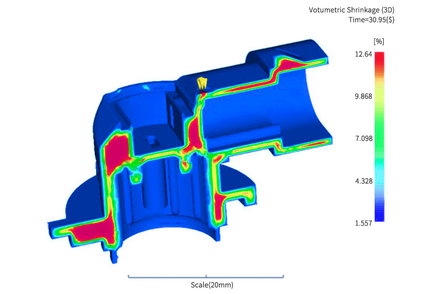 Different wall thicknesses, different shrinkage rates – red indicates high shrinkage rate